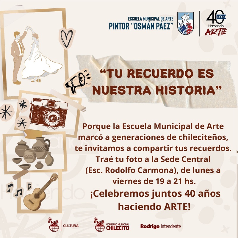 13/04/2026 | En el marco de un aniversario especial, la Escuela Municipal de Arte “Pintor Osmán Páez” lanzó una convocatoria abierta a toda la comunidad para reunir fotos y recuerdos que formen parte de su historia.